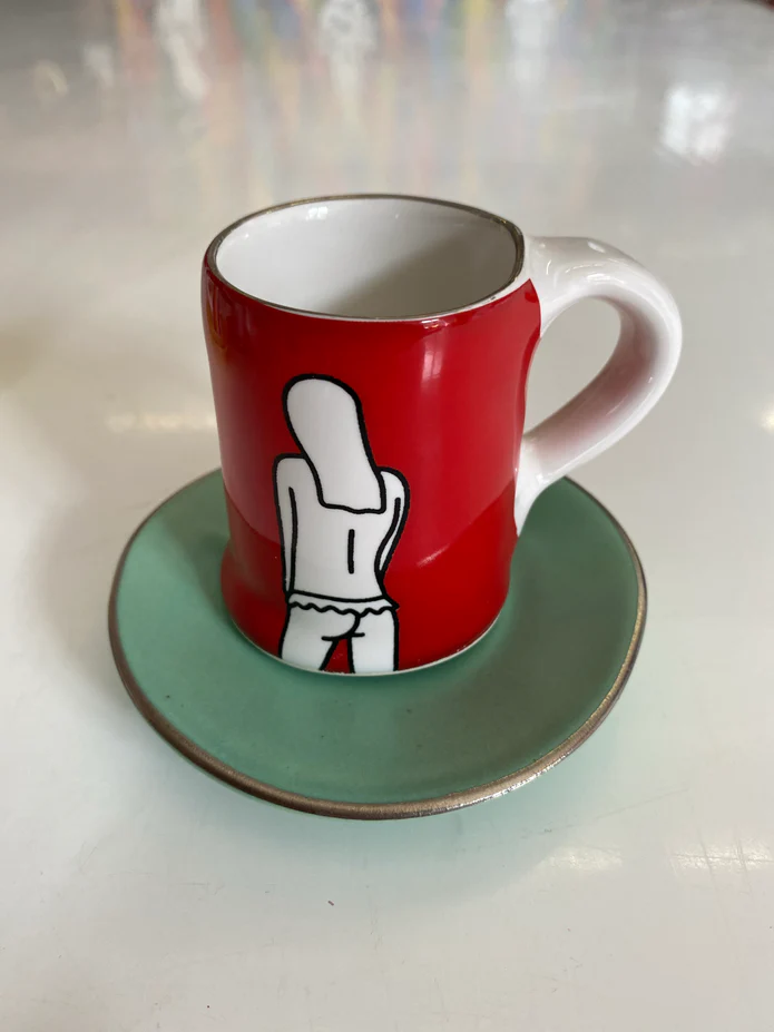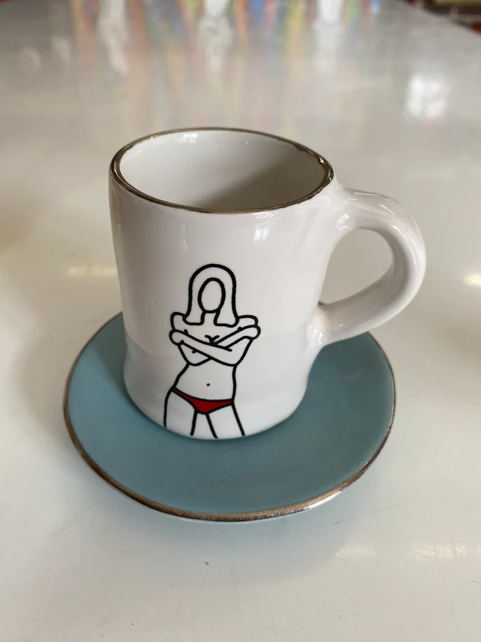 Set of 4 ceramic Espresso Cups, milk jug and sugar bowl