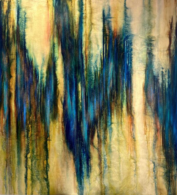 Oil and glitter on gold leaf on canvas